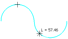 Если в измерении участвуют несколько объектов, то последовательно укажите щелчком мыши все объекты, участвующие в измерении, кроме последнего объекта. К этому объекту подведите курсор. Результаты измерения отобразятся рядом с курсором. Например, требуется измерить расстояние между двумя точками на кривой. Щелкните мышью по кривой, вдоль которой будет измеряться расстояние. Затем щелкните мышью по первой точке кривой, а ко второй подведите курсор. Рядом с курсором появляется результат измерения (рисунок б).