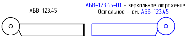 •чертеж содержит ассоциативные виды исходного и зеркального исполнений (надписи создаются при добавлении одного из этих видов, если другой уже имеется в чертеже),