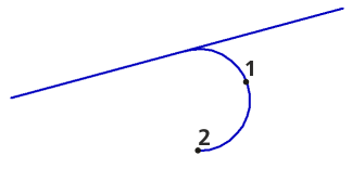 Построение касательной дуги возможно не при всех комбинациях точки, через которую должна пройти дуга, и значения радиуса. О невозможности построения свидетельствует исчезновение фантома дуги после ввода значения радиуса. |