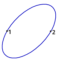 Пример дуги эллипса, полученной усечением целого эллипса по точкам 1 и 2