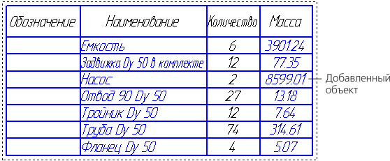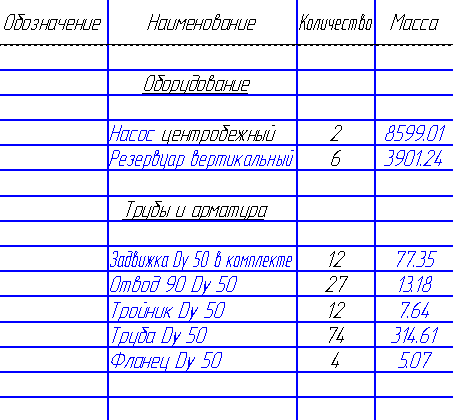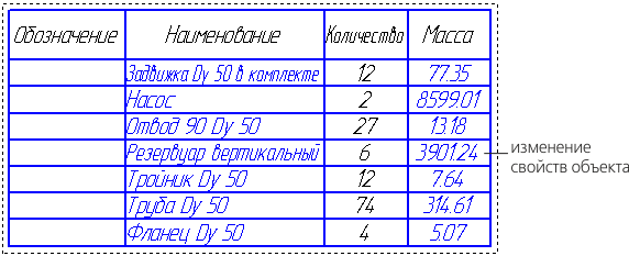 13.Обновите отчет. Для этого вызовите команду Обновить таблицу. После обновления в отчете появляется новый объект — компоненты Насос с заданными свойствами.