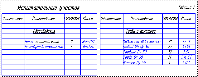 В примере заданы: в первом поле — Испытательный участок, во втором — Продолжение табл.
