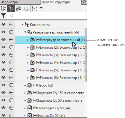 В примере компоненты Емкость переименованы в Резервуар вертикальный.
