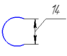 В качестве осевой можно указать осевую линию или отрезок со стилем осевая, а в качестве точки — отдельную точку или характерную точку объекта. Размер проставляется к указанной точке и точке, симметричной ей относительно осевой. Если указание выполняется при нажатой кнопке Выбор базового объекта, то сначала указывается осевая, а затем точка, а если при отжатой — объекты указываются в любом порядке. Значение размера равно удвоенному расстоянию от осевой до точки. К размерной надписи автоматически добавляется знак диаметра. |