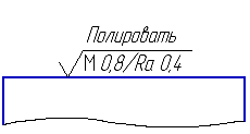 Ввод надписи обозначения шероховатости выполняется в подпроцессе Ввод текста. Данный подпроцесс запускается автоматически после фиксации положения знака шероховатости в графической области. Вы также можете запустить подпроцесс вручную. Для этого требуется щелкнуть мышью в поле Текст Панели параметров или нажать любую буквенно-цифровую клавишу на клавиатуре.