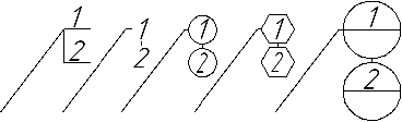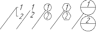 Раскрывающийся список позволяет выбрать форму для обозначения позиции. Доступны следующие варианты: •простой текст, •открытый текст, •круг, •шестиугольник, •круг с разделителем. Примеры обозначений различных типов приведены на рисунке ниже. |