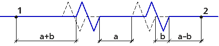 •Если расстояние b равно нулю (и, следовательно, смещение с равно нулю), изломы находятся на равном расстоянии друг от друга и от концов линии (см. рисунок а).