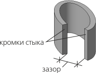 Перпендикулярно поверхности листа: поверхность кромки перпендикулярна поверхности обечайки вдоль всего зазора.
