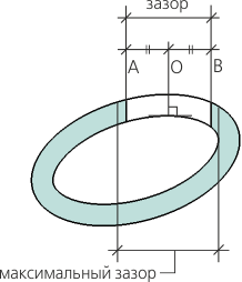 Величина зазора задается в поле Зазор. Допускаются только положительные значения. Максимально допустимое значение зазора зависит от его расположения в обечайке — зазор не должен выступать за внутреннюю стенку (см. рисунок).