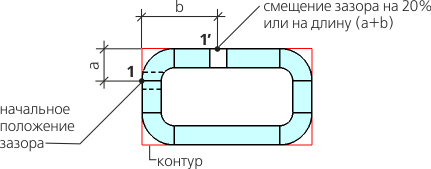 По длине сегмента — по длине контура от его начальной точки до точки в центре зазора. В поле Длина задается абсолютное смещение в единицах измерения длины.