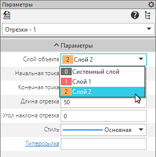 Если значение нечисловое (например, стиль линии), то раскрывается список значений.