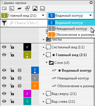 Обратите внимание на то, что пиктограммы в Дереве документа всегда показывают состояние слоя, назначенное пользователем. Они не изменяются, когда слой становится текущим или перестает быть таковым. |