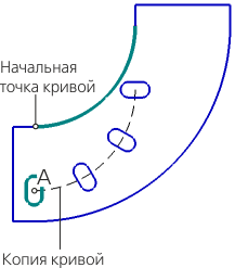 Строится копия указанной кривой: кривая параллельным переносом перемещается так, чтобы ее начальная точка совпала с базовой точкой копируемого объекта. Полученная копия кривой является траекторией копирования.