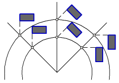 Концентрическая сетка характеризуется положением ее плоскости и центра, радиусами окружностей и углом между пересекающими их радиальными лучами (см. рисунок).