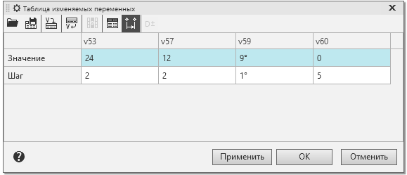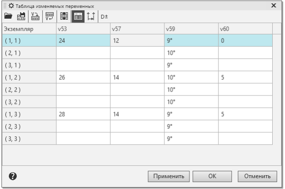 на инструментальной панели диалога Таблица изменяемых переменных.