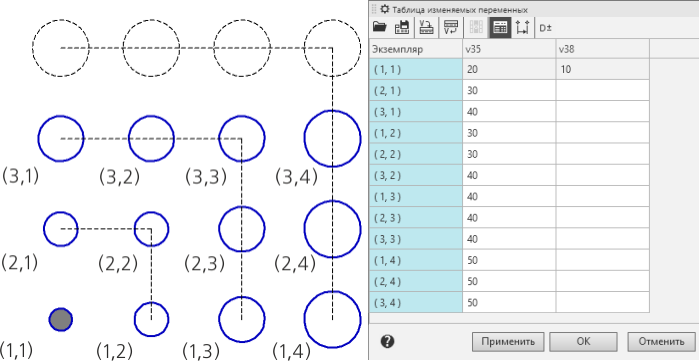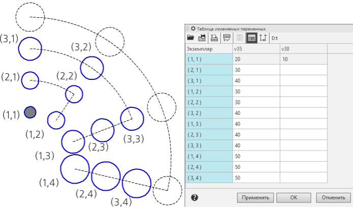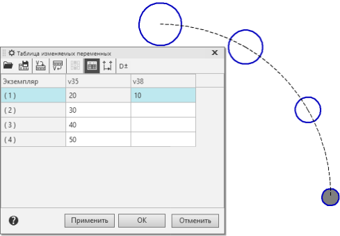 3.Если таблица содержит переменные размеров эскиза или операции копируемого объекта, то вы можете изменить допуски на эти размеры. Кроме того, можно управлять отображением допусков в таблице.