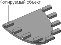 Вы можете построить экземпляры массива по точкам с сохранением исходной ориентации — ориентация каждого экземпляра массива в его базовой точке будет совпадать с ориентацией копируемого объекта в его базовой точке. Для этого нажмите кнопку Сохранять исходную ориентацию в группе Ориентация секции Параметры массива. Все экземпляры будут ориентированы в пространстве так же, как копируемый объект.
