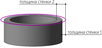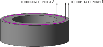 Тонкостенный элемент представляет собой полый элемент без торцов. Он формируется добавлением слоя материала к поверхности, полученной движением контура. Толщина слоя материала задается пользователем.