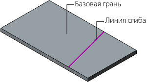(базовая линия сгиба показана утолщенной линией, проекция исходного элемента — штриховой)