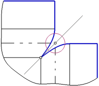 Замыкание углов с круговой обработкой невозможно, если: •отверстие с текущим значением диаметра разделяет листовое тело на отдельные части, •отверстие с текущими параметрами (диаметр и смещение) не имеет пересечений с цилиндрическими гранями сгибов. |