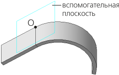 •грань сгиба — в этом случае вспомогательная плоскость создается автоматически и располагается в одной из вершин грани (см. рисунок).