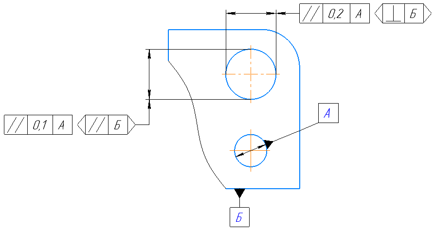 Пример указания ориентирующей плоскости в обозначении допуска формы