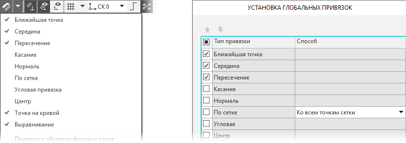 В параметрическом режиме ограничения возникают автоматически при срабатывании привязки. Если точки, к которым возможна привязка, совпадают, то срабатывает та привязка, у которой выше приоритет. Приоритет определяется порядком следования привязок в меню кнопки Привязки и может быть изменен.