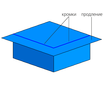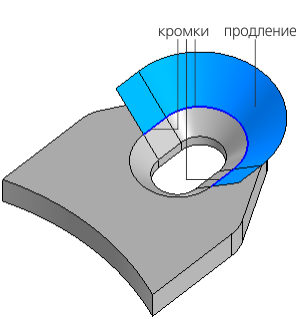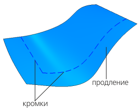 Грани поверхностей и/или тел с нарушенной целостностью можно продлевать за пределы указанных кромок — открытых ребер. Продление поверхности выполняется путем изменения положения указанных кромок или путем создания новых граней, примыкающих к указанным кромкам. Грани продлеваются за пределы указанных кромок на заданную длину или до указанного точечного объекта. Пользователь может выбрать, чем будет являться продлевающий участок: частью исходной поверхности или новой поверхностью. При выборе второго варианта можно продлевать грани поверхности или тела, примыкающие к ребру (цепочке ребер), которое не является открытым.