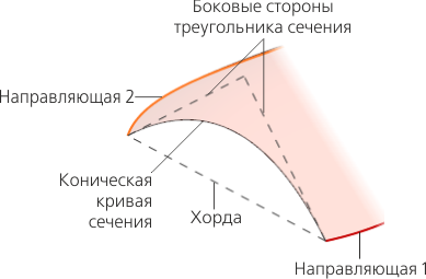 •От хорды — для определения угла наклона используется угол между стороной треугольника и хордой конической кривой. Данный угол рассчитывается для каждого положения сечения в соответствии с заданной функцией.
