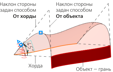 Вариант определения наклона выбирается с помощью переключателя От объекта/От хорды.