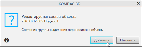 На экране появится сообщение о редактировании состава объекта, см. рисунок.