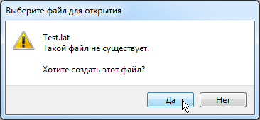3.В появившемся диалоге выбора файла введите имя несуществующей библиотеки Test.lat и нажмите кнопку Открыть.