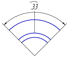 Размер дуги характеризует длину дуги окружности. Над размерным числом такого размера автоматически проставляется символ дуги.