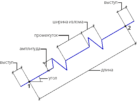 Укажите начальную точку линии с изломами, задайте длину и угол наклона отрезка средней линии (угол между отрезком средней линии и осью абсцисс текущей системы координат). Длина и угол наклона отрезка задаются в полях Длина и Угол.