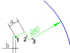 При перемещении точки излома следует учесть, что длина линии от центра до излома ограничена размером обозначения фиктивного центра, то есть a>b (см. рисунок а).