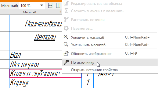 Если требуется изменить количество для какого-либо объекта спецификации, то это следует делать в подчиненном режиме работы со спецификацией в документе-источнике (сборке или чертеже): войти в режим редактирования нужного объекта и ввести требуемое число в графу Количество.