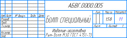 В основной надписи чертежа стандартное изделие будет записано как изделие-заготовка: в графе Материал отобразится текст «Изделие-заготовка <наименование заготовки>».