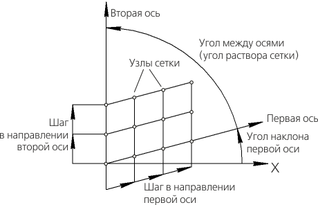 2.С помощью групп элементов Направление 1 и Направление 2 задайте параметры параллелограммной сетки. Подробнее...