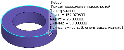 . Информация представляет собой справочные сведения о модели или об указанном объекте модели: примитиве (ребро, грань, вершина), операции (элемент выдавливания, ребро жесткости, отверстие, фаска и т.п.), точке, кривой, поверхности, размере, обозначении, компоненте и др.