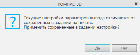 Сообщение о различии между текущими параметрами вывода и параметрами, сохраненными в задании на печать