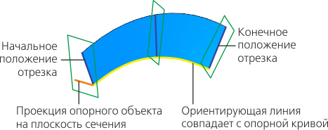 Если требуется, чтобы отрезок-сечение двигался по указанной кривой в противоположном направлении, нажмите кнопку Сменить направление