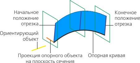 Типы объектов, используемых для задания ориентации плоскости сечения, и порядок их указания приведены в разделе Объекты, задающие ориентацию плоскости сечения при движении отрезка-сечения.
