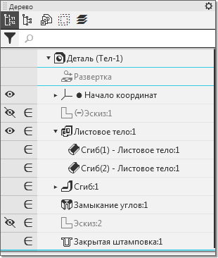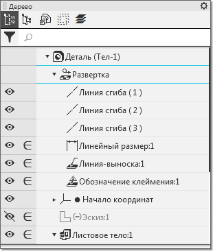 Пример отображения пиктограммы развертки в Дереве построения: