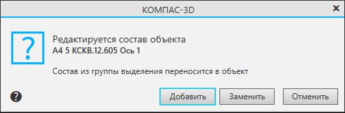 •Заменить — присутствует в диалоге, если в документе были выделены объекты и у редактируемого объекта спецификации есть геометрия;