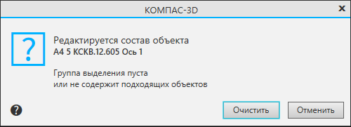 •Очистить — присутствует в диалоге, если в документе не было выделенных объектов и у редактируемого объекта спецификации есть геометрия.