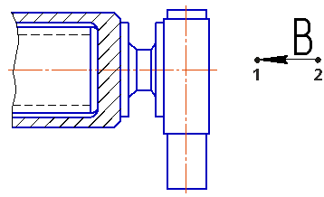 3.При необходимости можно задать направление стрелки взгляда. Для этого укажите в графической области нужный прямолинейный объект: отрезок, вспомогательную прямую, осевую линию, линию разреза или стрелку взгляда. При наведении на объект курсора объект подсветится, а курсор примет вид квадратной «ловушки».