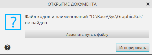 Этот диалог появляется на экране, если при поиске файла Graphic.kds система не обнаружила его по пути, указанной переменной среды SYS.
