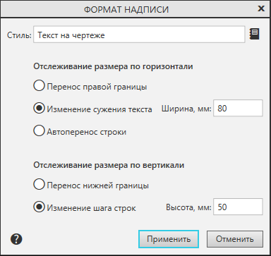 Этот диалог появляется на экране после вызова команды Формат — Формат надписи....