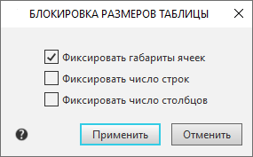 Включите эту опцию, чтобы размеры ячеек таблицы нельзя было изменить.