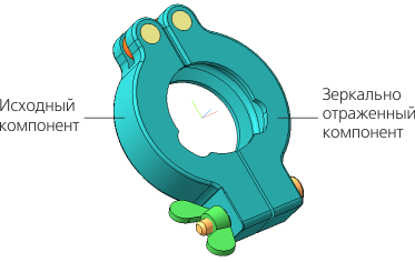 . Она позволяет создать компоненты, зеркальные и/или симметричные исходным. При этом не учитываются операции над компонентами, произведенные в содержащей их сборочной модели, т.е. полученные компоненты являются отражением моделей, имеющихся в файлах-источниках исходных компонентов.